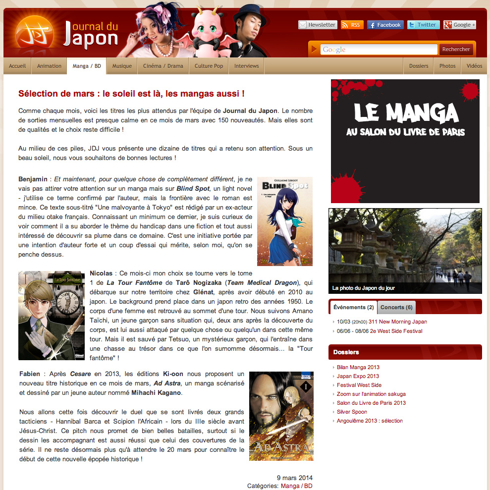 « Blind Spot », tome 1 – Journal du Japon – 2014-03