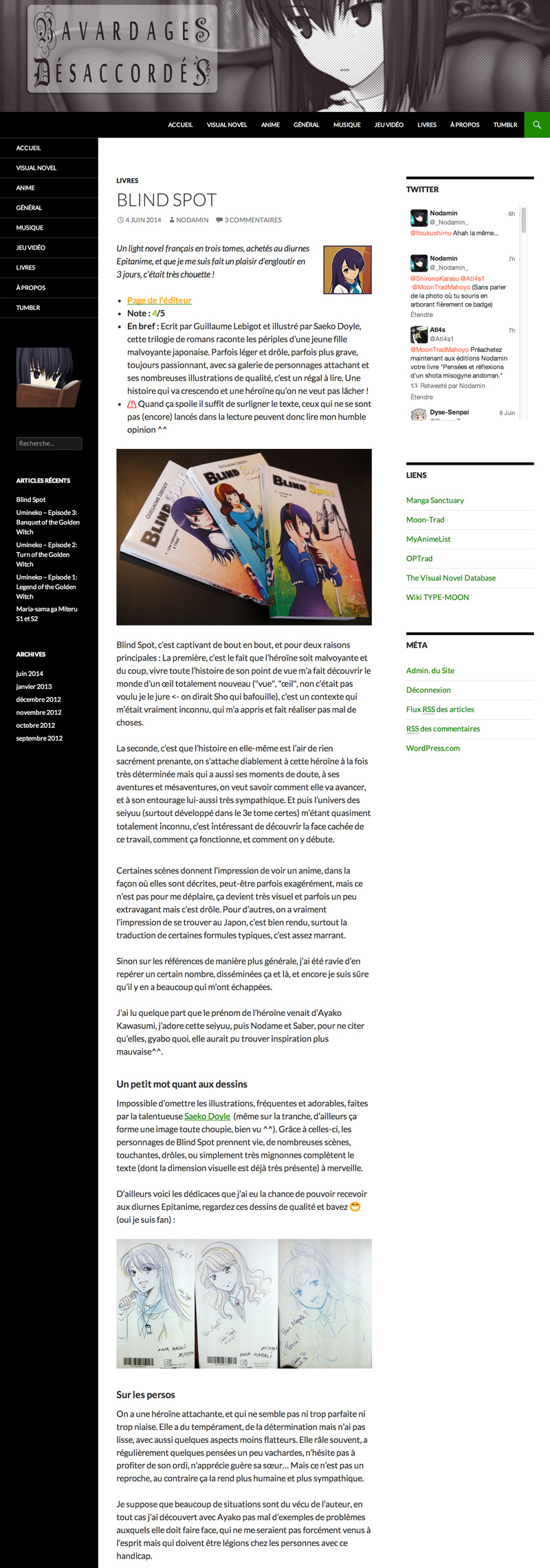 Bavardages désaccordés – Blind Spot tome 1, 2 & 3 – 2014-06